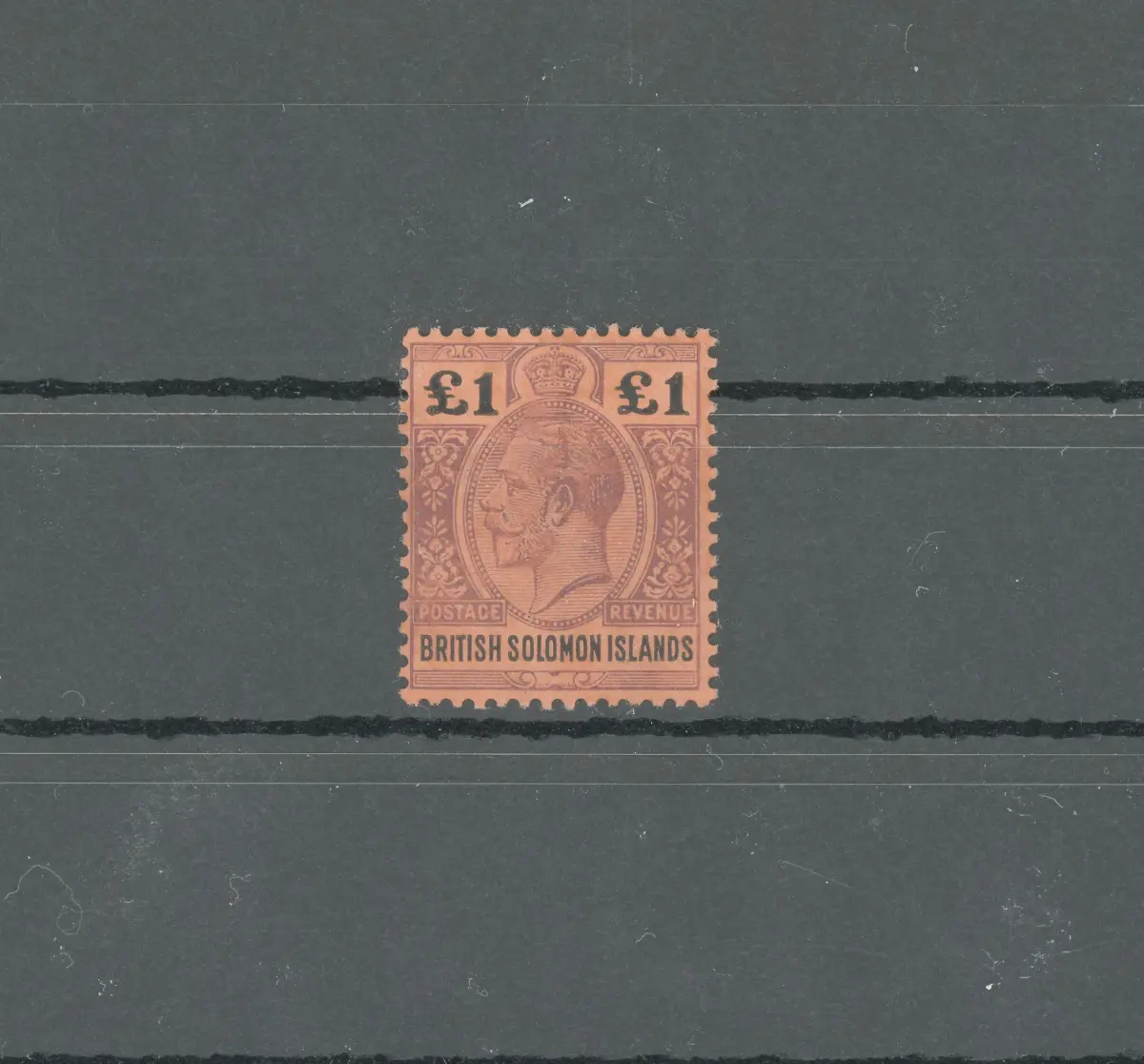 1914-23 British Solomon Island, Stanley Gibbons Nr. 38, 1 Pfund lila und schwarz, Giorgio V - MLH* Catalogo Stanley Gibbons 250 - Lotto 301-10