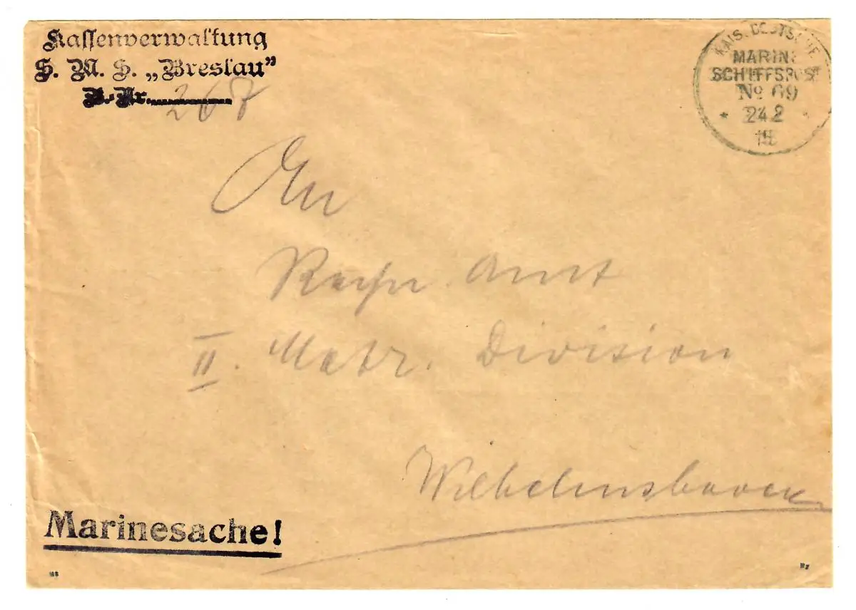 1915: KDMSP No 69, Marinesache, Kassenverwaltung Breslau, Kommando Wilhelmshaven