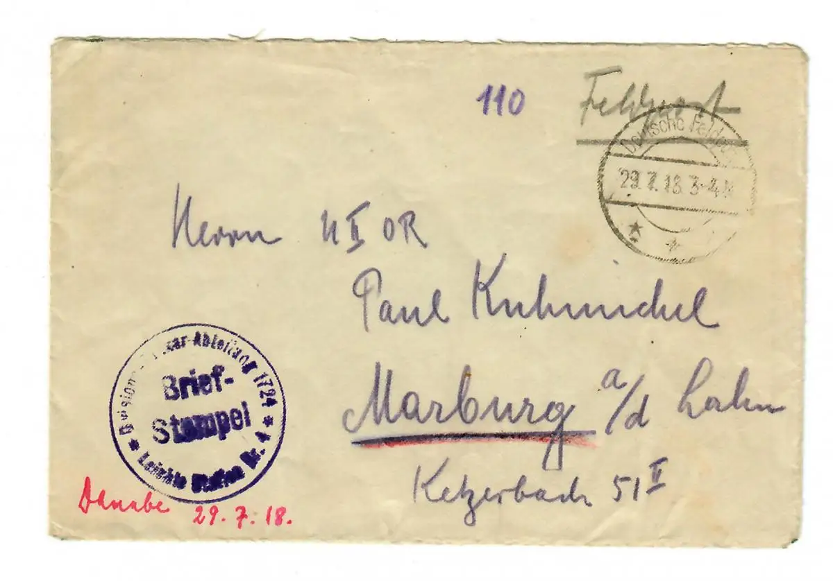 Siehe Scan: Die Feldpoststation 371 war beim Oberkommando der 8. Armee an der Front ab Oktober 1917 in Gaza und ab dem 8.11. in El Tine und dem 17.11. in Tull Kerim. Der Brief geht nach Marburg