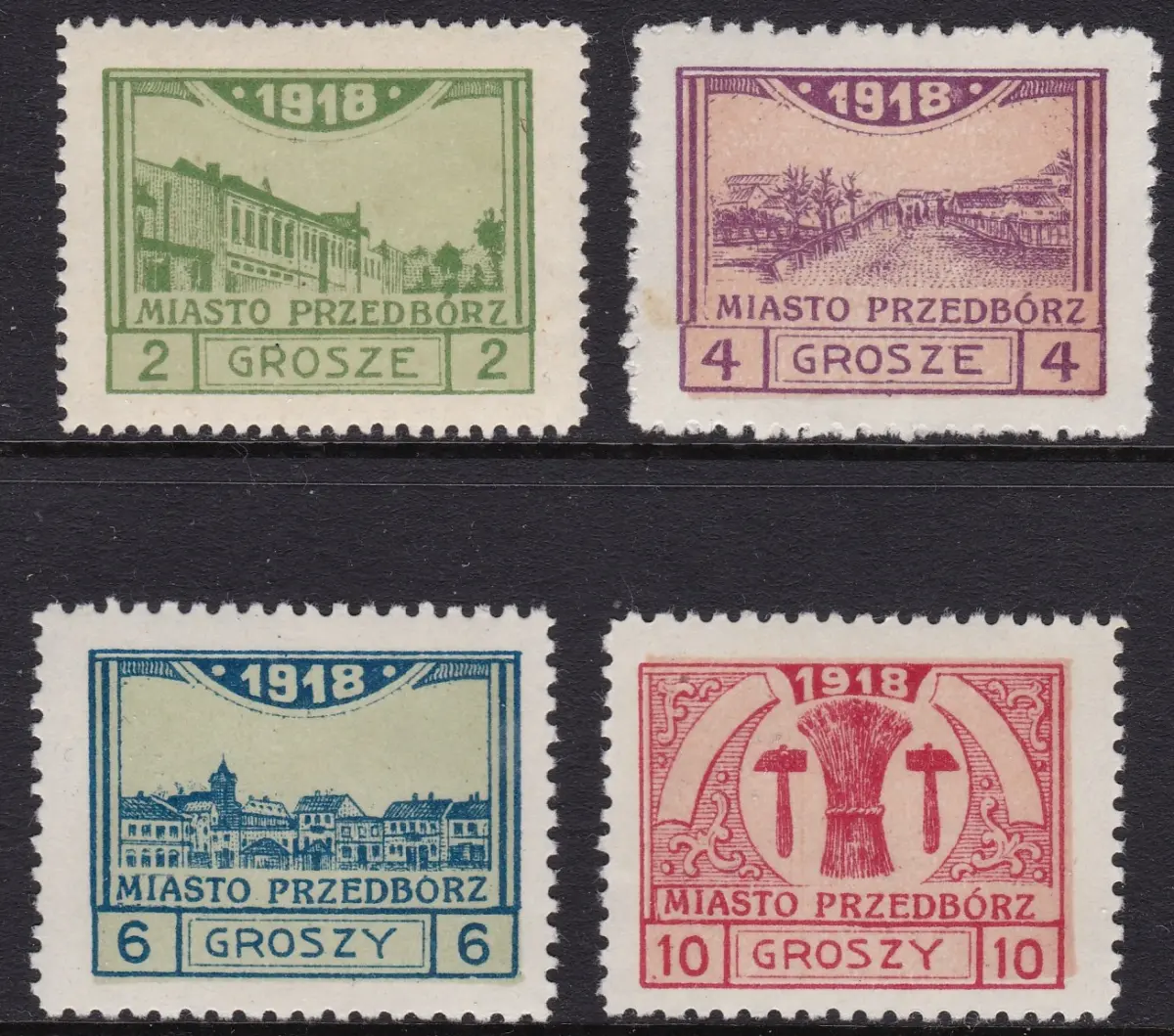 1918 POLEN, Nr. 3/6 4 Werte GEZÄHNT MH / * Wappen und Stadtansicht Einheitskatalog Euro 132 Lot 93