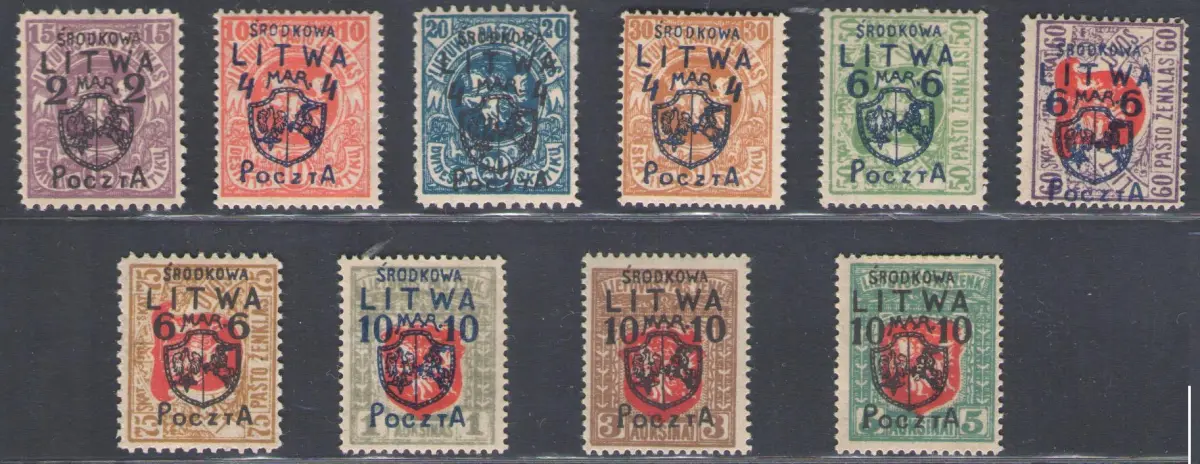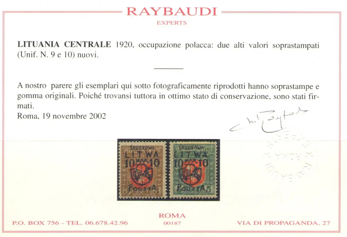 1920 Zentrallitauen, Polnische Besetzung, Nr. 1/10, MLH* - Raybaudi Zertifikat Einheitskatalog Euro 6.900 Michelkatalog Euro 6.500 Album Rot Köln 1
