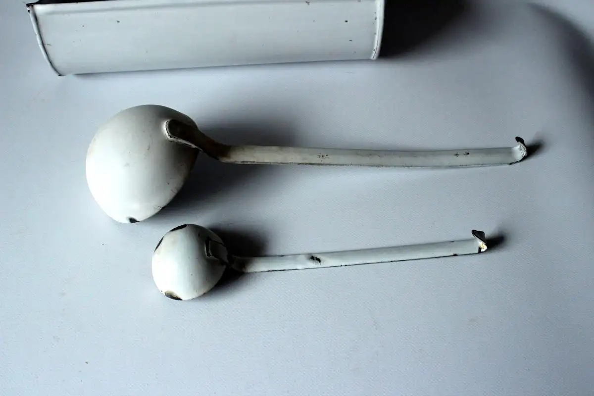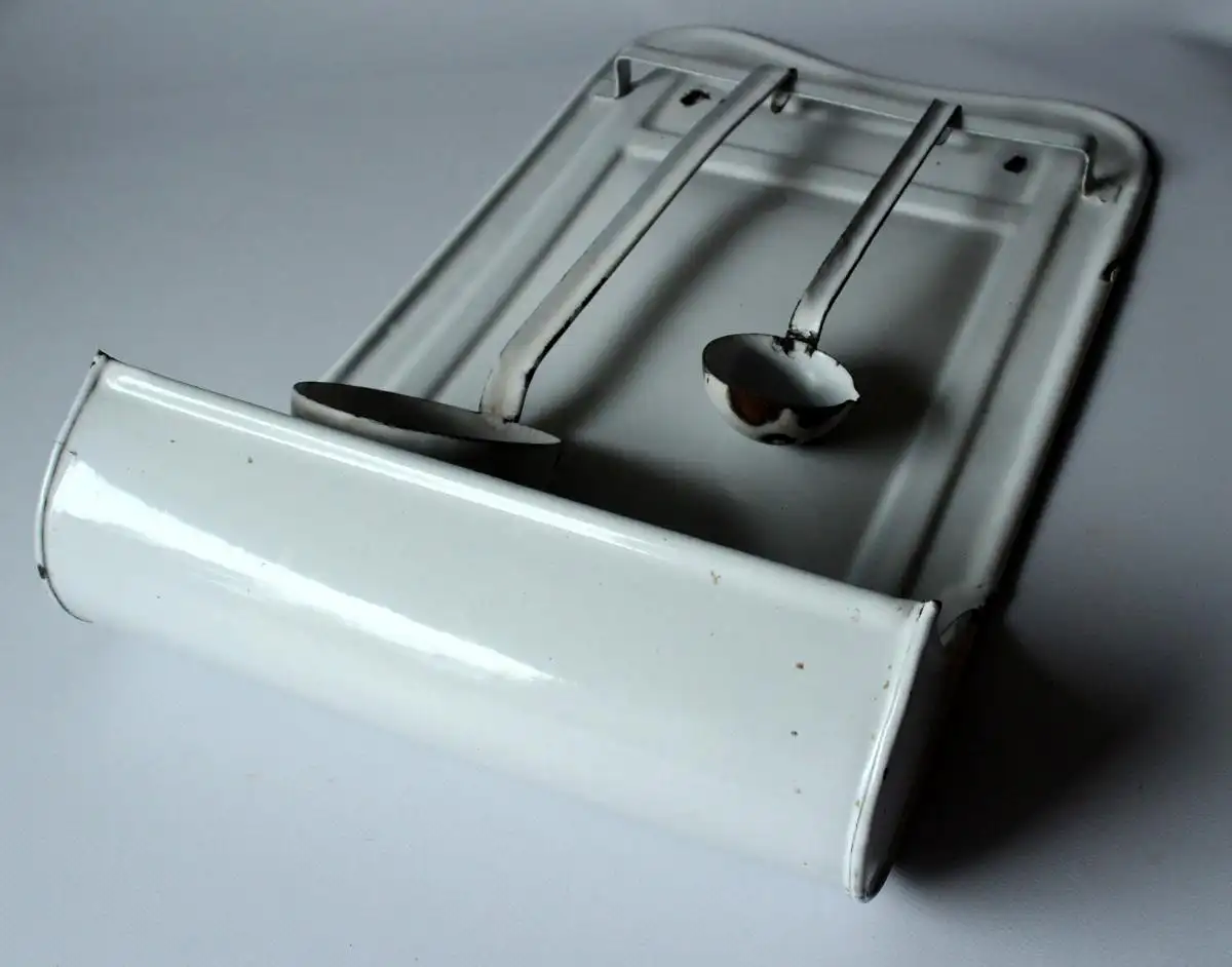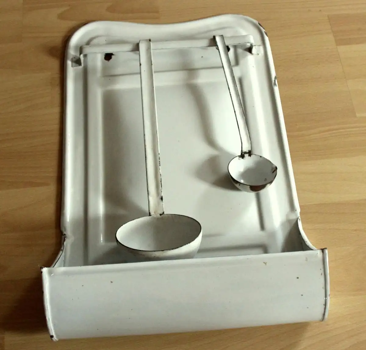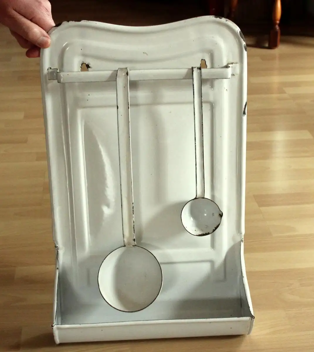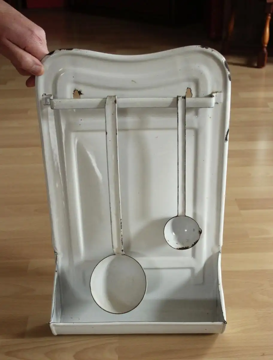 1920s Antiker Kellenhalter mit 2 Schöpfkellen - Emaille - seltenes Sammlerstück