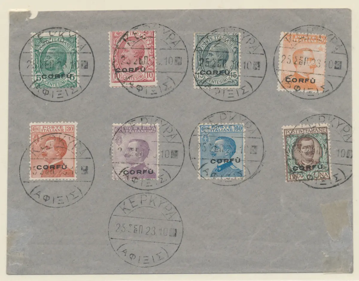 1923 Italienische Besetzung Korfu, Nr. 1/8 auf nicht gereistem Umschlag, Originalstempel!!!