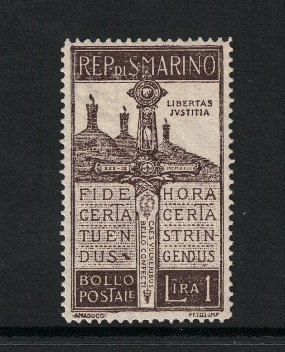 1923 SAN MARINO, Verstümmelt im Krieg, # 97, sehr zentriert, postfrisch ** SÄCHSISCHER KATALOG Euro 200 - Lot M Holzkiste