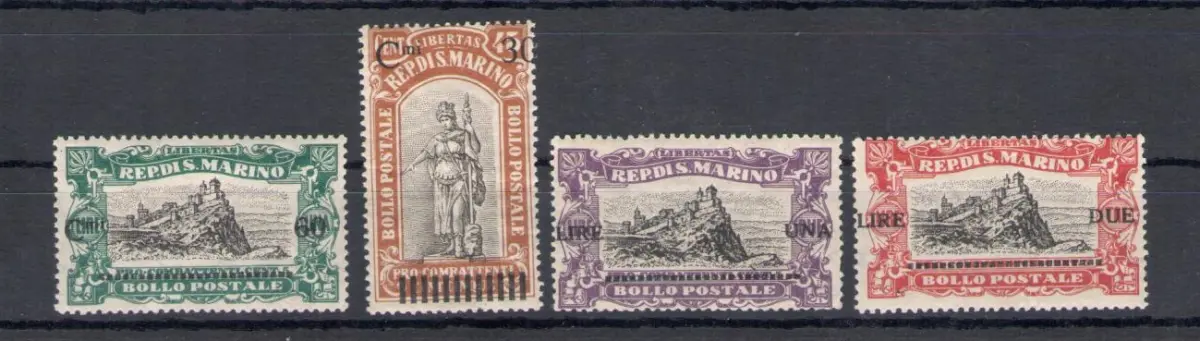 1924 SAN MARINO, Pro Combattenti überdruckt, Nr. 103-06 - 4 Werte - MNH ** SÄCHSISCHER KATALOG Euro 200 - rote Box Ausland Claudio