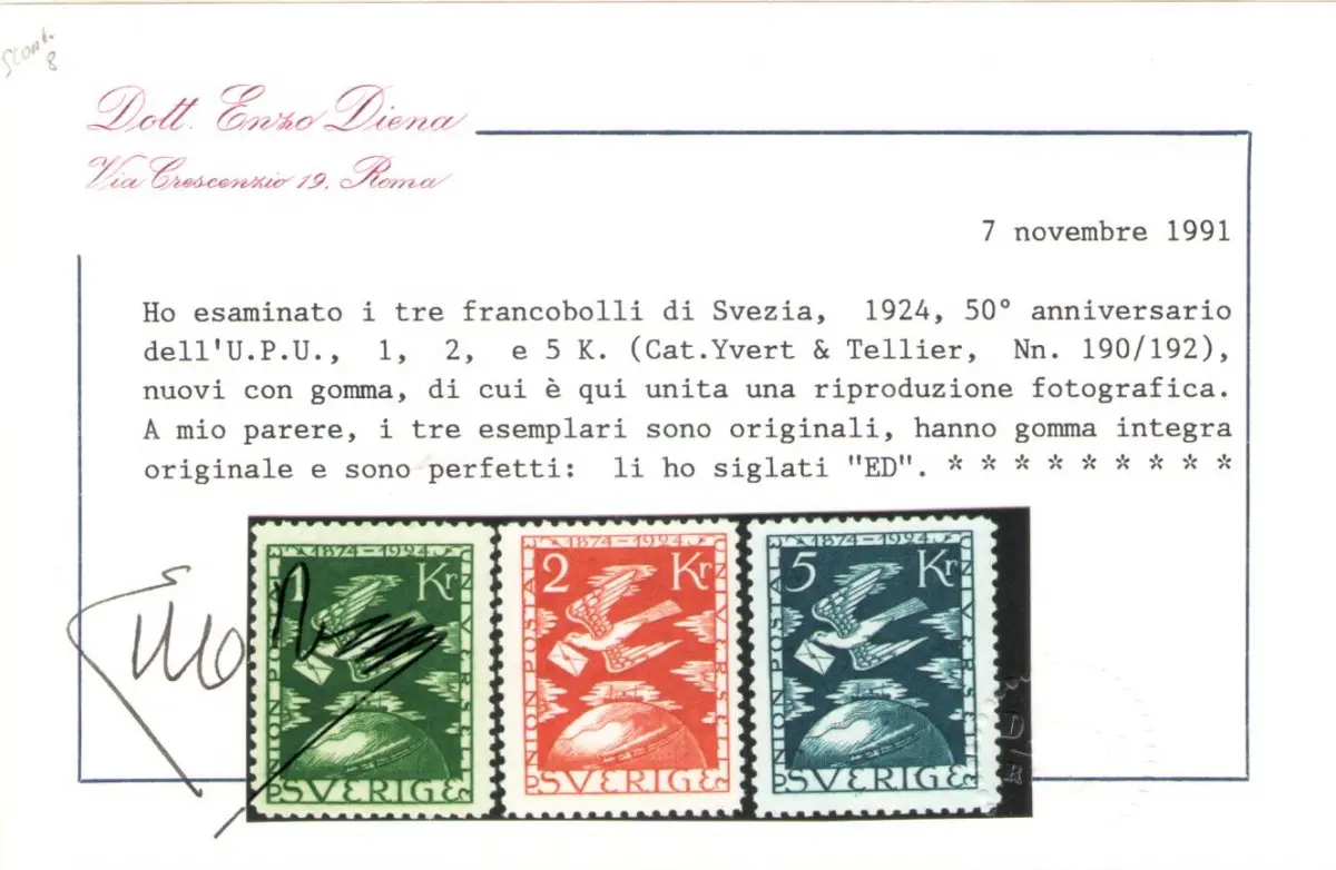 1924 Schweden Nr. 178/92 - Cinquantenario Upu - Farbpapier - MNH **