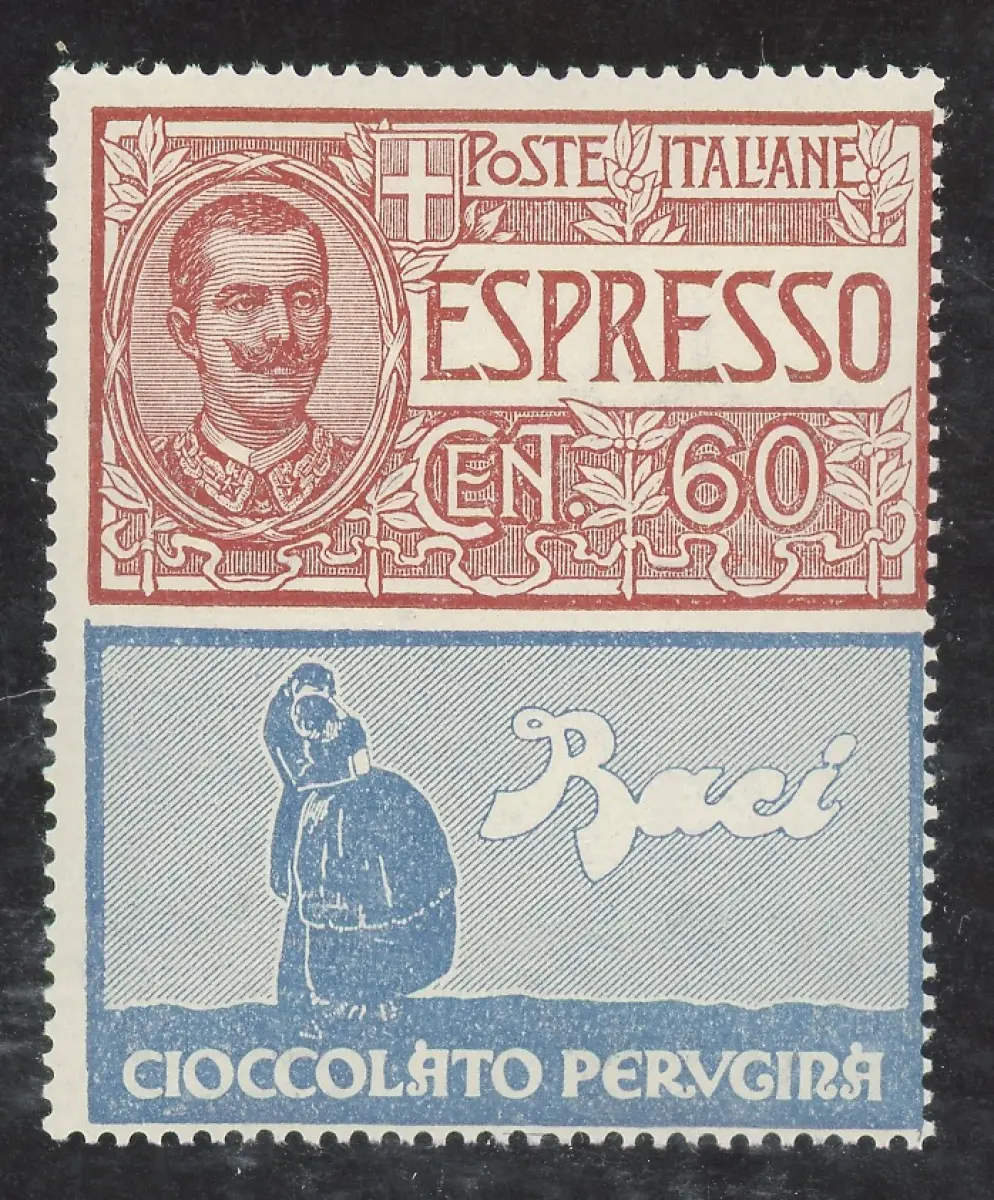 1925 Italien - Königreich, Werbung Nr. 21, 60 Cent rot und blau Columbia nicht ausgegeben, MNH** - Küsse Perugina Sassone Euro 125 diskrete ZENTRIERUNG - Neu mit Vollgummi und Original, sehr frisch - Lagerbestand rotes Album Königreich Dienstleistungen