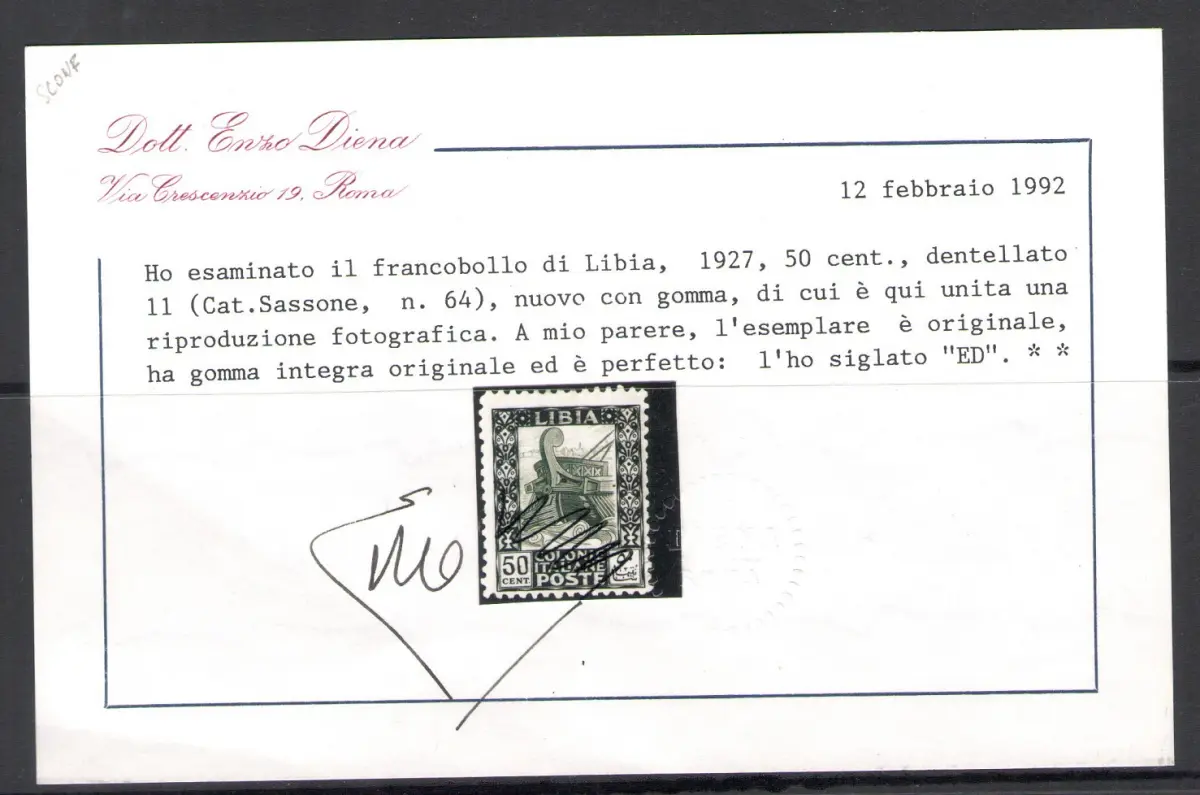 1926-30 Libyen, 11 lineare gezackte Malerei, kein Wasserzeichen Nr. 58/64 - MNH** - Vollgummi und Original wie auf dem Scan zu sehen!!!!