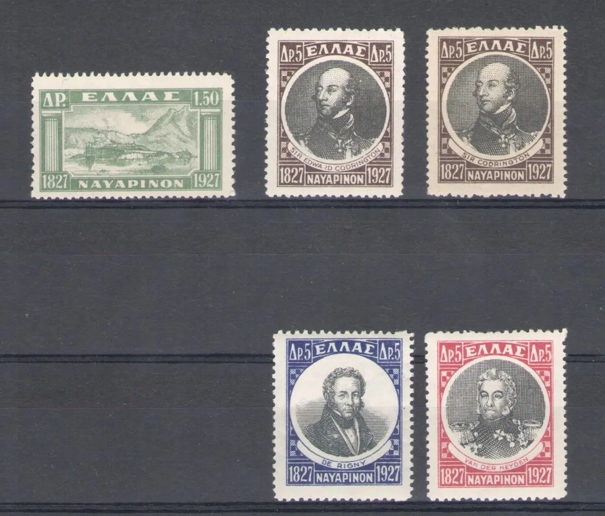 1927-28 Griechenland, Hundertjahrfeier Seeschlacht von Navarino Nr. 369/374 NO 370 - MH*