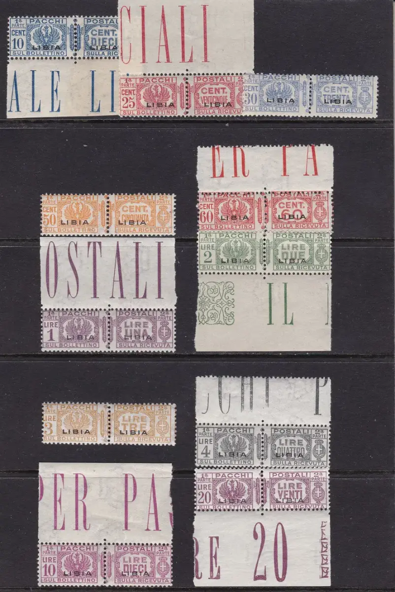 1927-37 LIBYEN, Postpakete Nr. 14/24 MNH/** HOHE WERTE BLATTRAND Postpakete aus Italien von 1927-1934 (Littorio-Bündel) überdruckt Sächsischer Katalog Euro 2.500 schwarze Box Kolonien