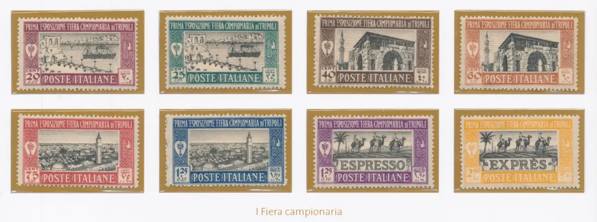 1927 LIBYEN, 1 Messe von Tripolis Nr. 66/71 + Espress 14/15 - postfrisch ** Sächsischer Katalog Euro 250 Lot Haus Album braun 1