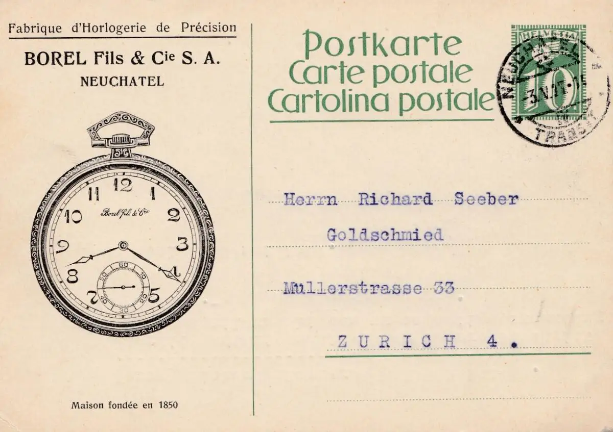 1927: Schweiz: Neuchatel - Uhren an Goldschmied in Zürich - Ganzsache