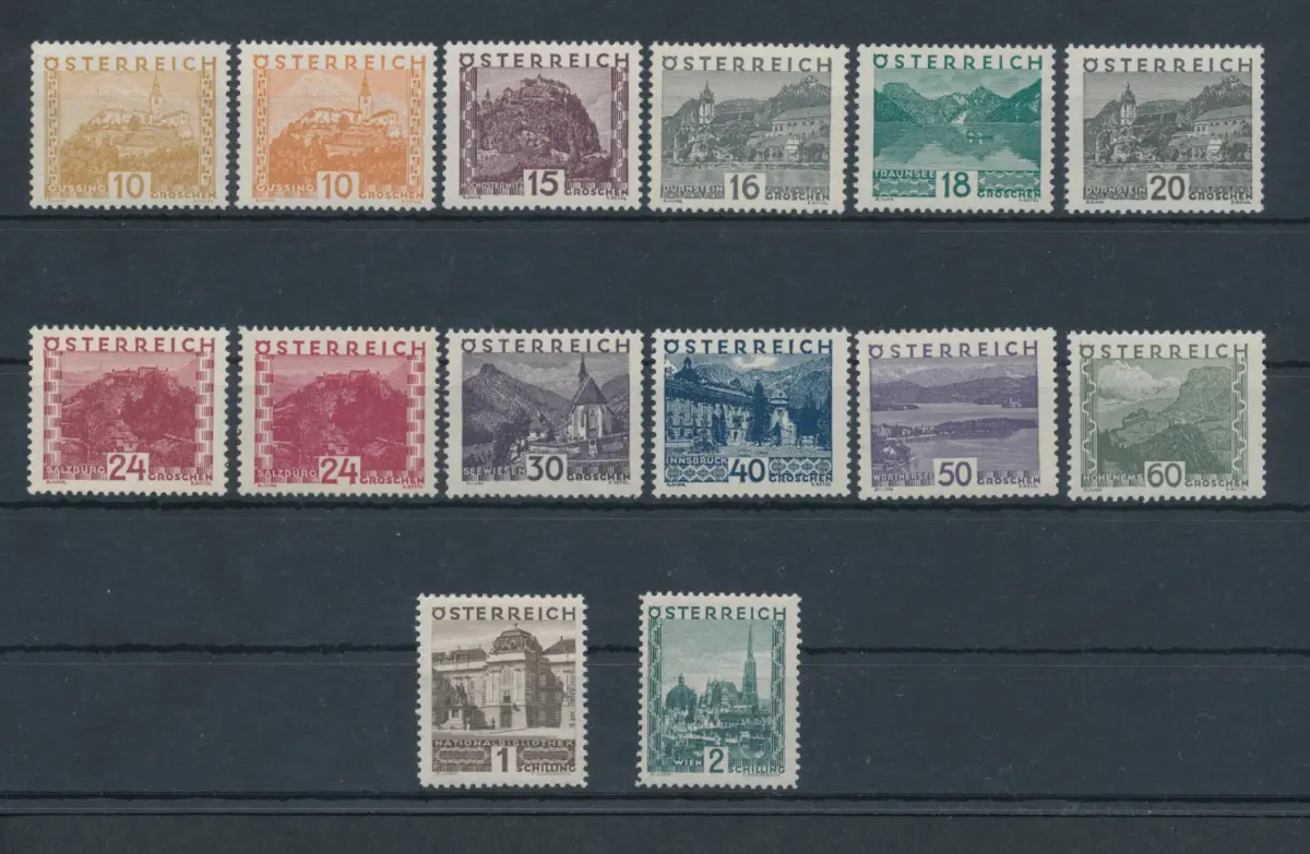 1929 - 30 Österreich - Nr. 378-389 - Ansichten und Landschaften - 14 Werte - postfrisch **