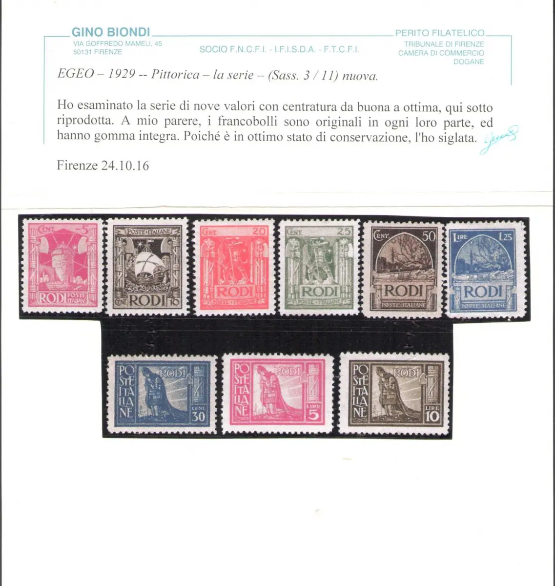 1929 Ägäis Serie Malerei gezähnt 11 Nr. 3/11 9 Werte postfrisch ** Zertifikat Blond Sächsischer Katalog Euro 2.000 Lot 81/6