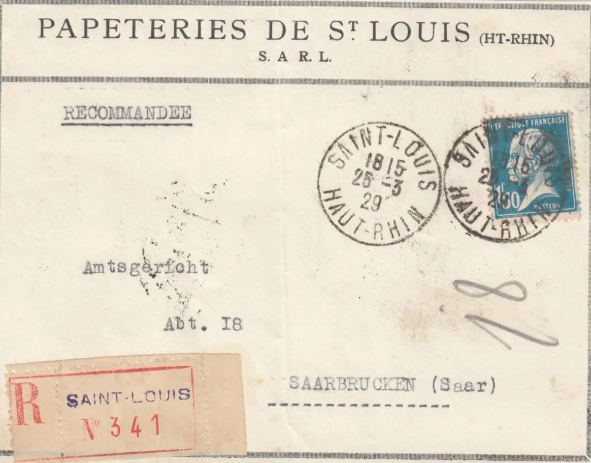 1929: Einschreiben St. Louis to Saarbrücken