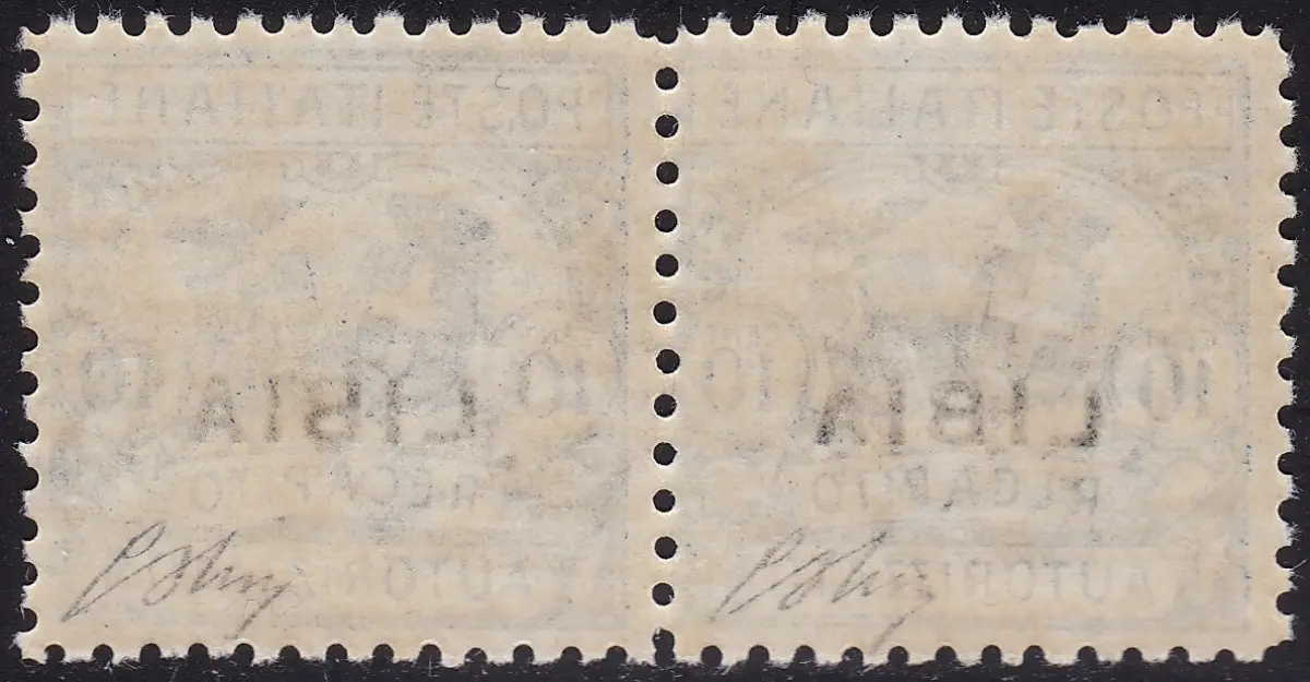 Autorisierte Lieferung aus Italien mit Aufdruck von 1928 Paar von 10c. hellblau gezackt 11, Olivsignatur Sächsischer Katalog Euro 1.000 Lot 81