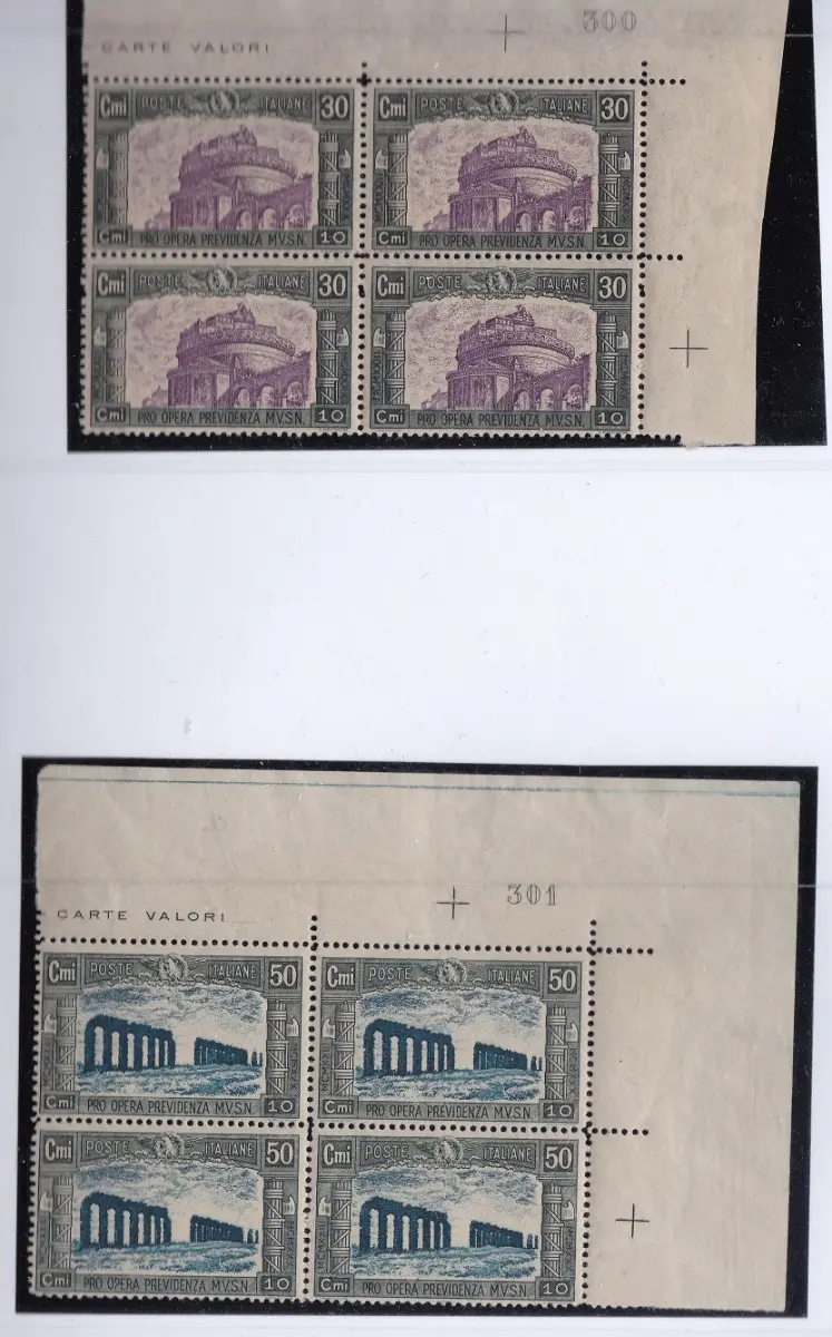 1930 Königreich Italien, Nr. 272/275 Miliz IIIa Ausgabe VIERTELBLATTWINKEL mit Tafelnummer Sächsischer Katalog Euro 375 +++ Lot 83 Alben 3