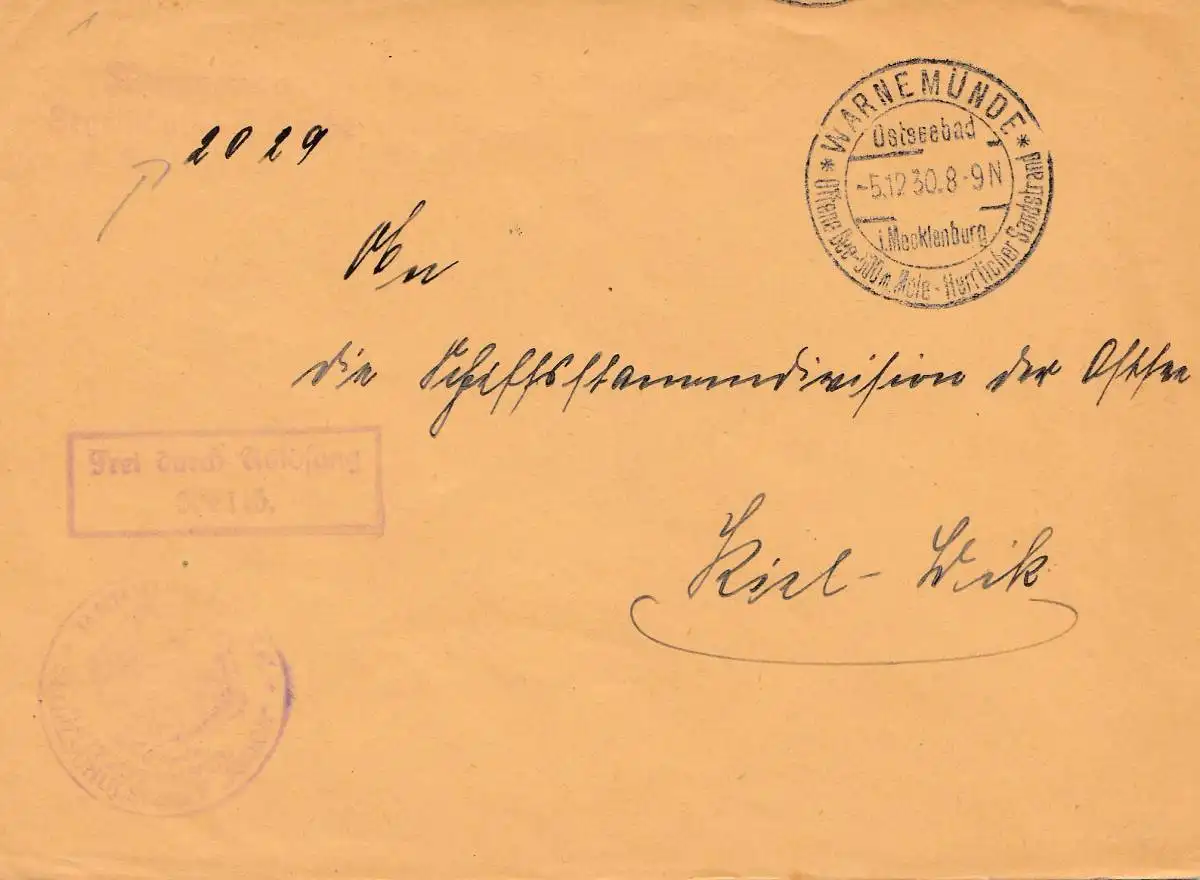 1930: Warnemünde-Ostseebad-Frei durch Ablösung Reich-Segelschulschiff