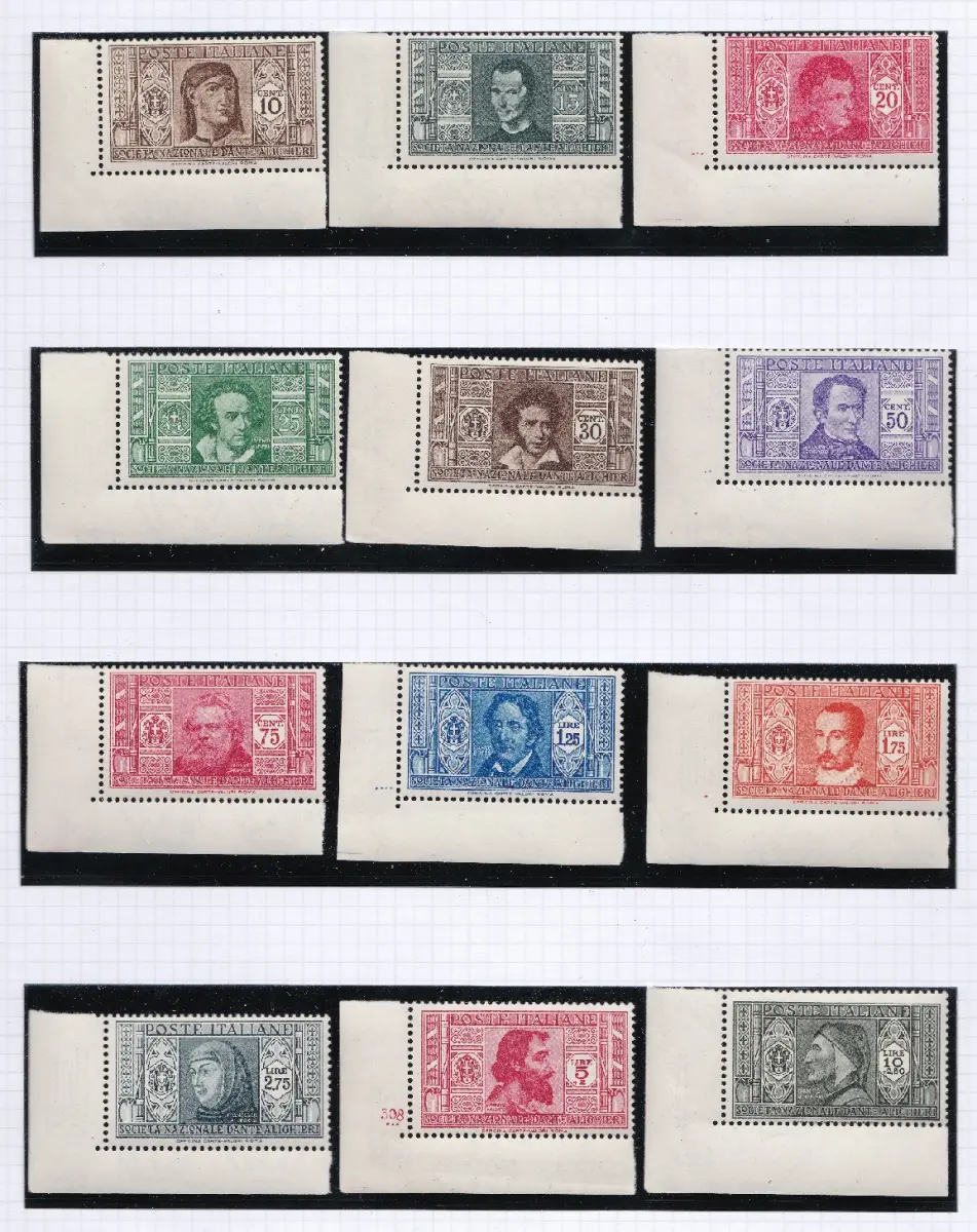 1932 Königreich Italien, Nr. 303/314 Serie mit 12 Werten WUNDERSCHÖNER BLATTECK mit Tischnummer/Zylinder Sächsischer Katalog Euro 450 +++++ Lot 83 Alben 3