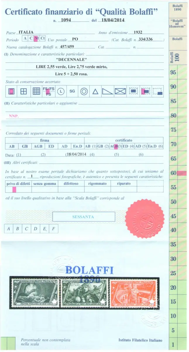 1932 KÖNIGREICH ITALIEN, Jahrzehnt des Marsches auf Rom Nr. 325/340 + PA 42/43 + Ex. 17/18 20 Werte - Bolaffi Zertifikat 1890 Sächsischer Katalog Euro 612,50 postfrisch / **