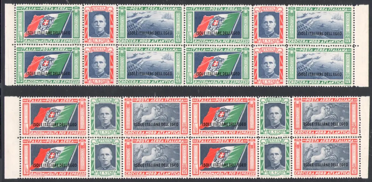 1933 Ägäis, Luftpost - Balbo Triptychon 28/29 postfrisch ** Bolaffi Signatur und Stempel wie gescannt Sächsischer Katalog Euro 2400