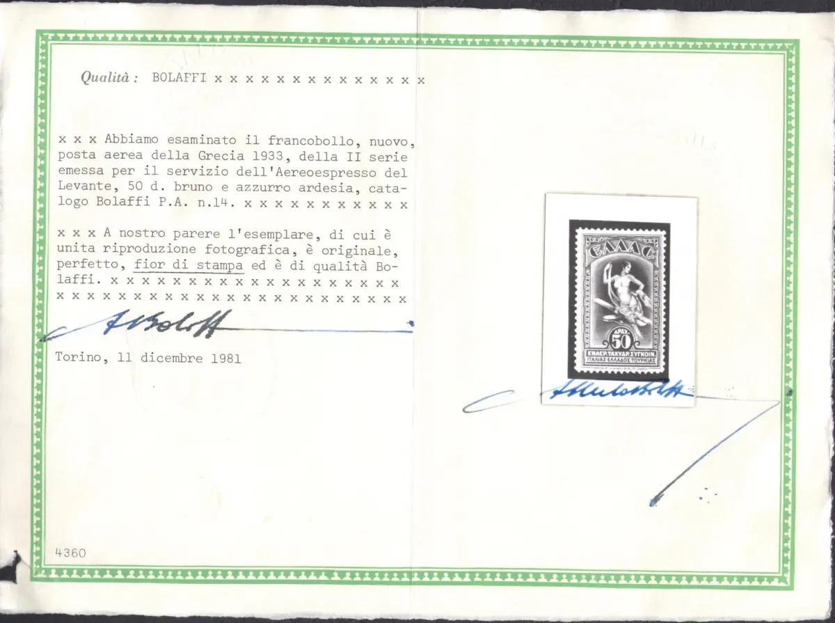 1933 GRIECHENLAND, Luftpost Nr. 8/14 - Verschiedene Themen - Gebraucht - Bolaffi Zertifikat für den hohen Wert Einheitskatalog Euro 230 - Los A/16
