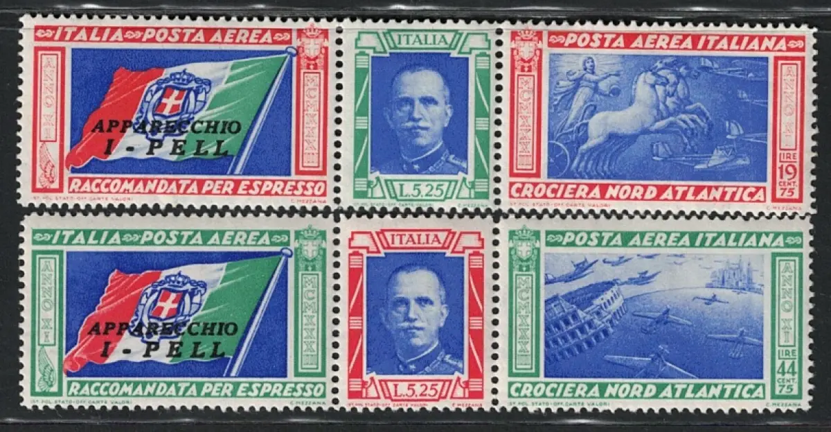 1933 Italien, Königreich, Luftpost, # 51F/52F, Tripttici Pell, MNH** 1933 Nordatlantik-Luftkreuzfahrt 1. Juli 12. August 1933 Die Luftkreuzfahrt des Jahrzehnts,oder Nordatlantikkreuzfahrt, oder auch 'Nordatlantik-Luftkreuzfahrt', auch bekannt als Luftkreuzfahrt 'Italien-Nordamerika', 'Orbetello-Chicago-New York-Rom' oder 'II Atlantikkreuzfahrt 1933, war die die zweite und letzte Transatlantikkreuzfahrt 1933.
