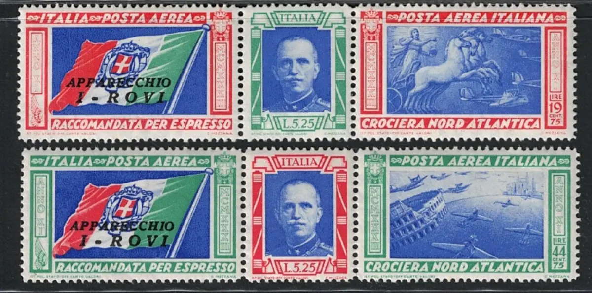 1933 Italien, Königreich, Luftpost, # 51R/52R, Tripttici Rovi, MNH** 1933 Nordatlantik-Luftkreuzfahrt 1. Juli 12. August 1933 Die Luftkreuzfahrt des Jahrzehnts,oder Nordatlantikkreuzfahrt, oder auch 'Nordatlantik-Luftkreuzfahrt', auch bekannt als Luftkreuzfahrt 'Italien-Nordamerika', 'Orbetello-Chicago-New York-Rom' oder 'II. Atlantikkreuzfahrt 1933, war die die die zweite und letzte Transatlantikkreuzfahrt 1933.