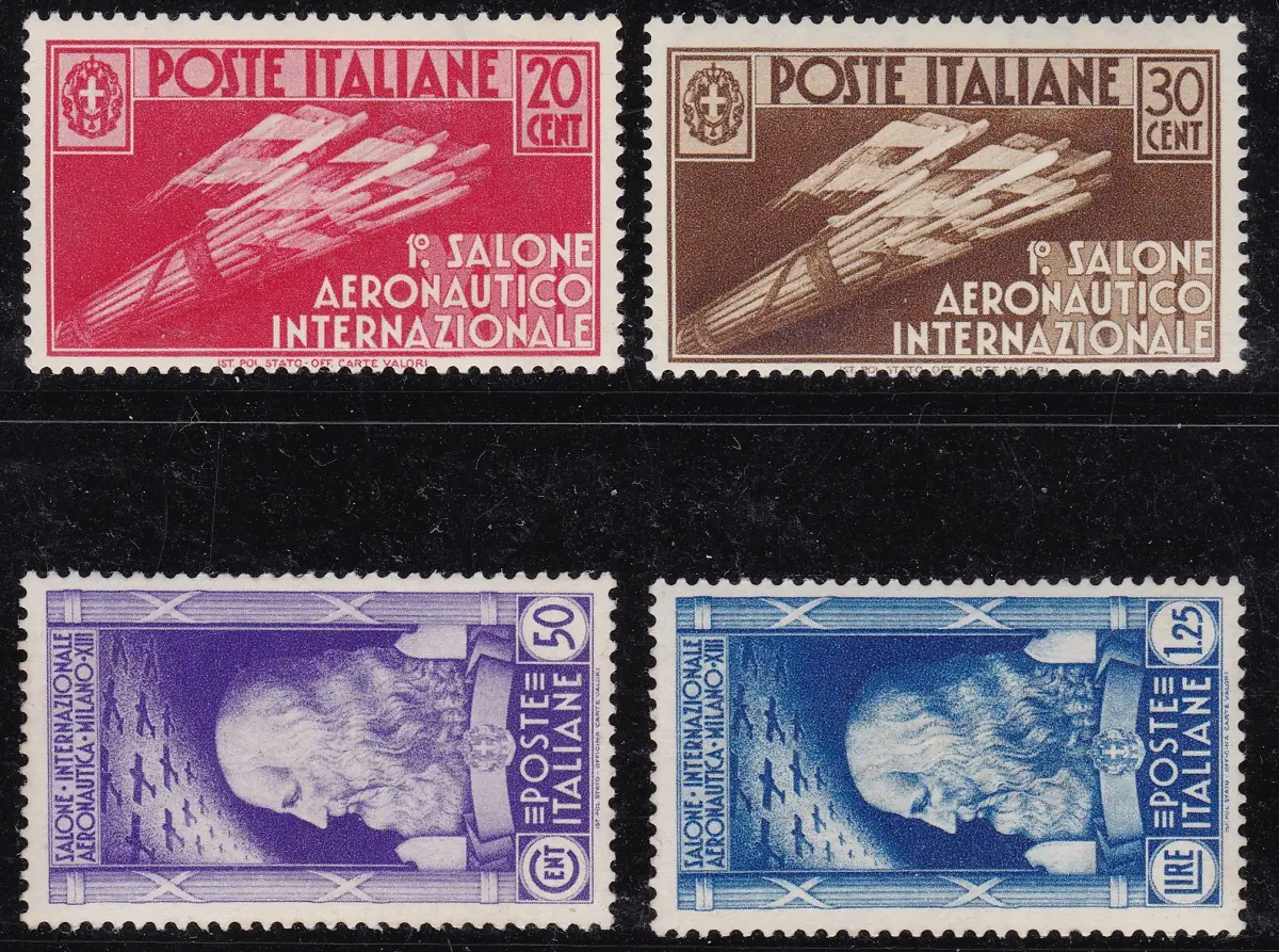 1935 Königreich Italien, Nr. 384/387 die komplette Serie von 4 Werten Zertifikat Blond 1. Internationale Luftfahrtmesse Sächsischer Katalog Euro 1.500 Lot 81