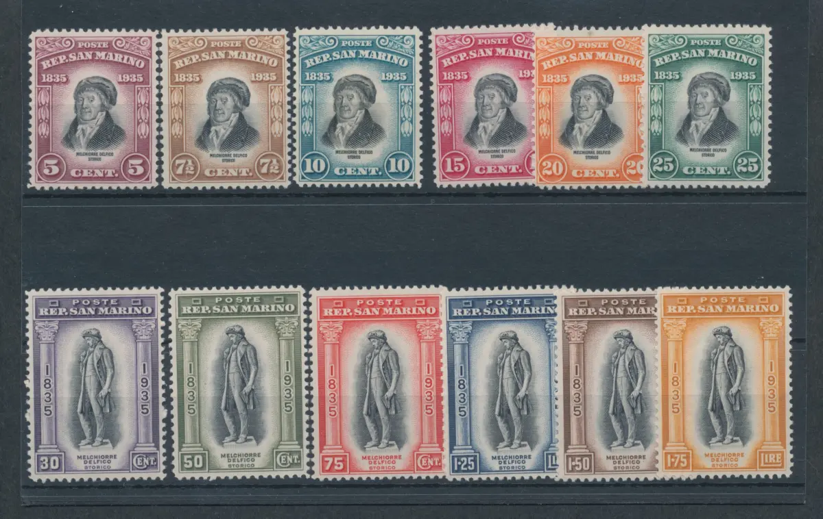 1935 SAN MARINO - Nr. 193/204 12 Werte postfrisch/** Hundertjahrfeier des Todes von Melchiorre Delphico, VOLLGUMMI Katalog Sachsen Euro 750