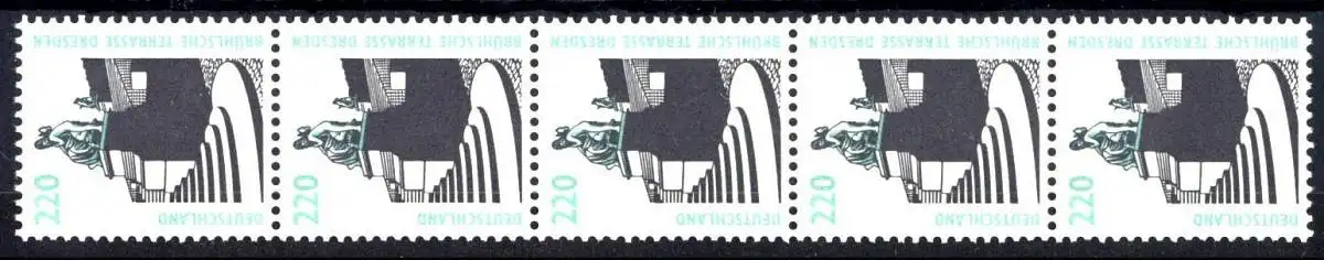 1936 SWK 220 Pf, 5er-Streifen + Nr. **