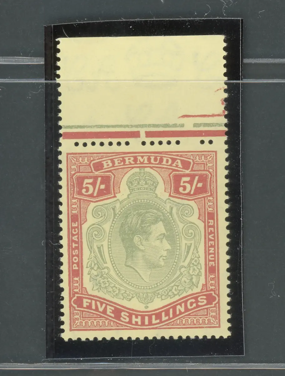 1938-53 BERMUDA, Stanley Gibbons Nr. 118a, GEORGE VI Portrait, 5 scellini pal grün und rot/gelb Papier - postfrisch**