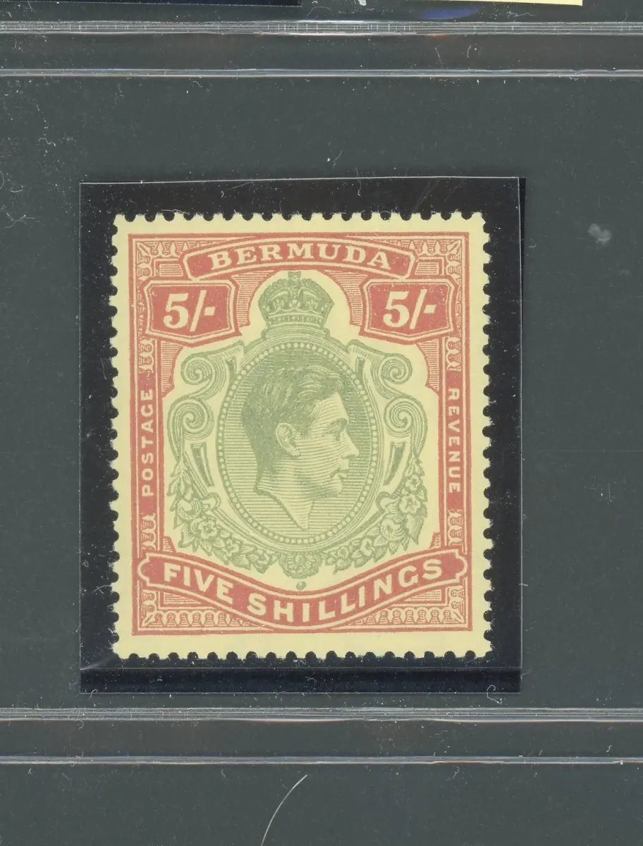 1938-53 BERMUDA, Stanley Gibbons Nr. 118f, GEORGE VI Portrait, 5 Scellini grünes und rot/gelbes Papier - postfrisch** perforiert 13 STANLEY GIBBONS 35 Lotto 301-6