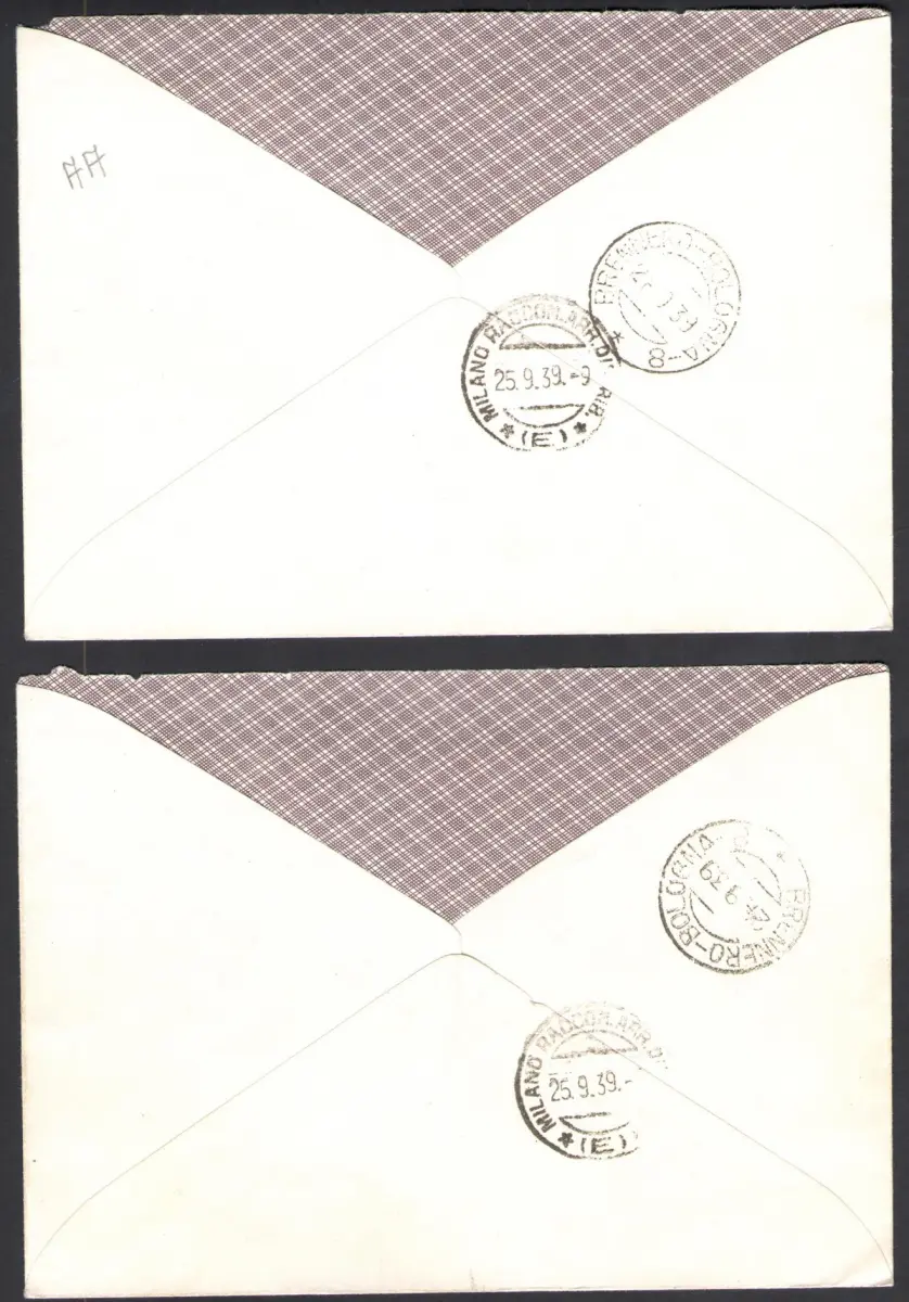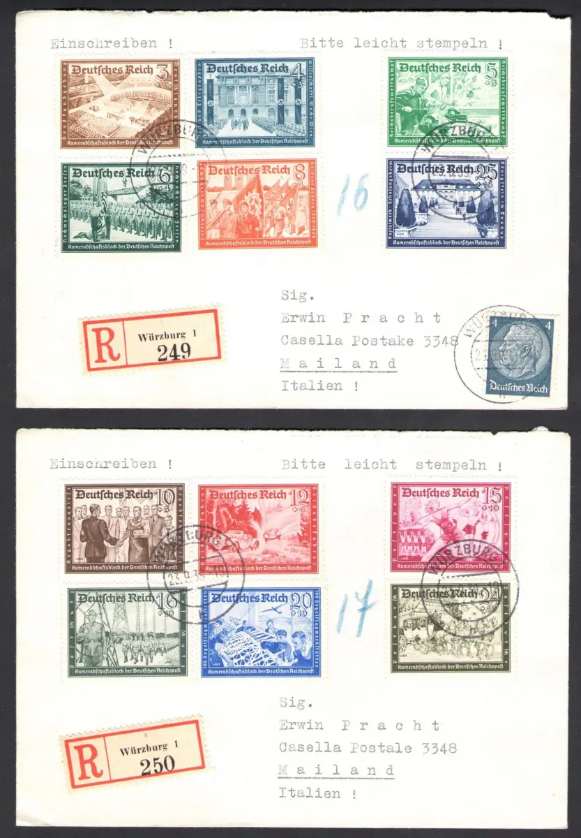 1939 Deutschland / Deutsches Reich, 2 Einschreiben von Würzburg nach Mailand (Ankunftsstornierung 25.9.) mit der kompletten Serie Unif. 640/651 Michel Euro - A/Buchstaben