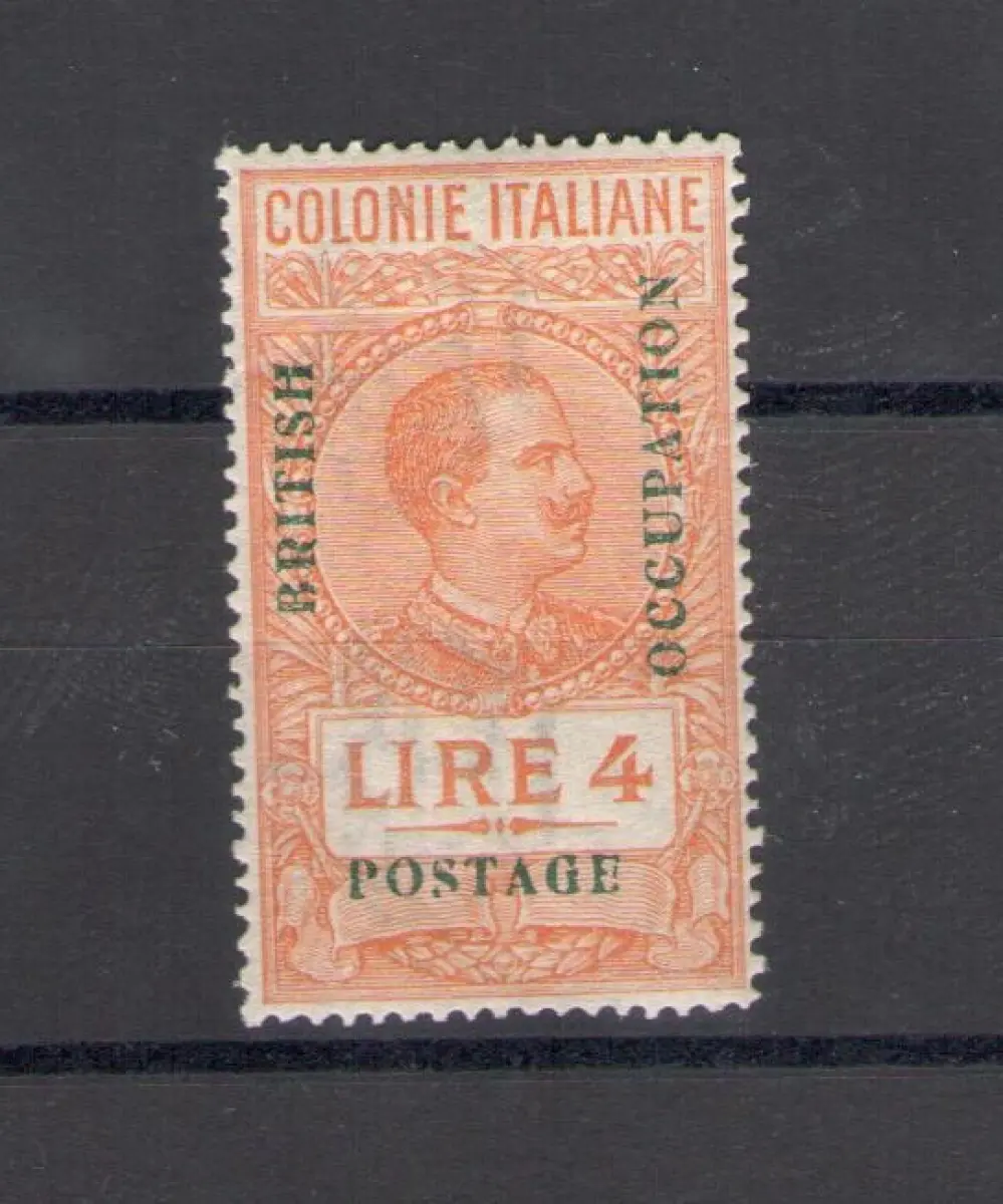 1941 Briefmarken der italienischen Kolonien Aufdrucke British Occupation e Postage Non Emesso 4 Lire Orange, Nr. 13 MNH ** SÄCHSISCHER KATALOG Euro 320 rote Schachtel Claudio