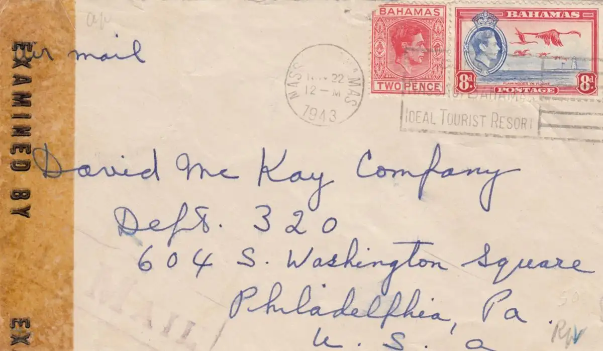 1943: Bahamas, Nassau to Philadelphia, Pa, USA, censor