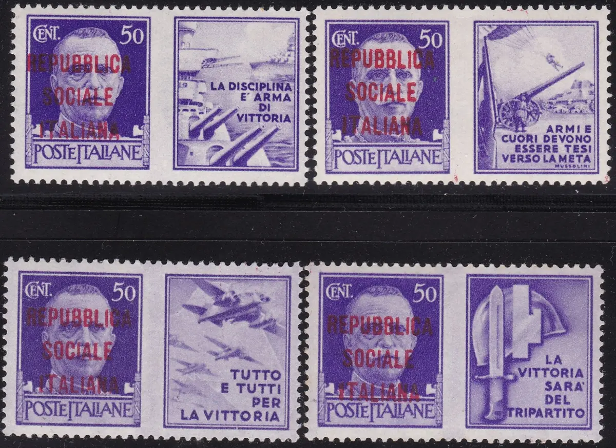 1944 Italienische Sozialrepubblica, PG Nr. 33I/36I 50 Cent. violett MNH/** AUFDRUCK ABZIEHBILD - 4 WERTE Katalog Sachsen Euro 50 Lot 81 - ALBUM 3