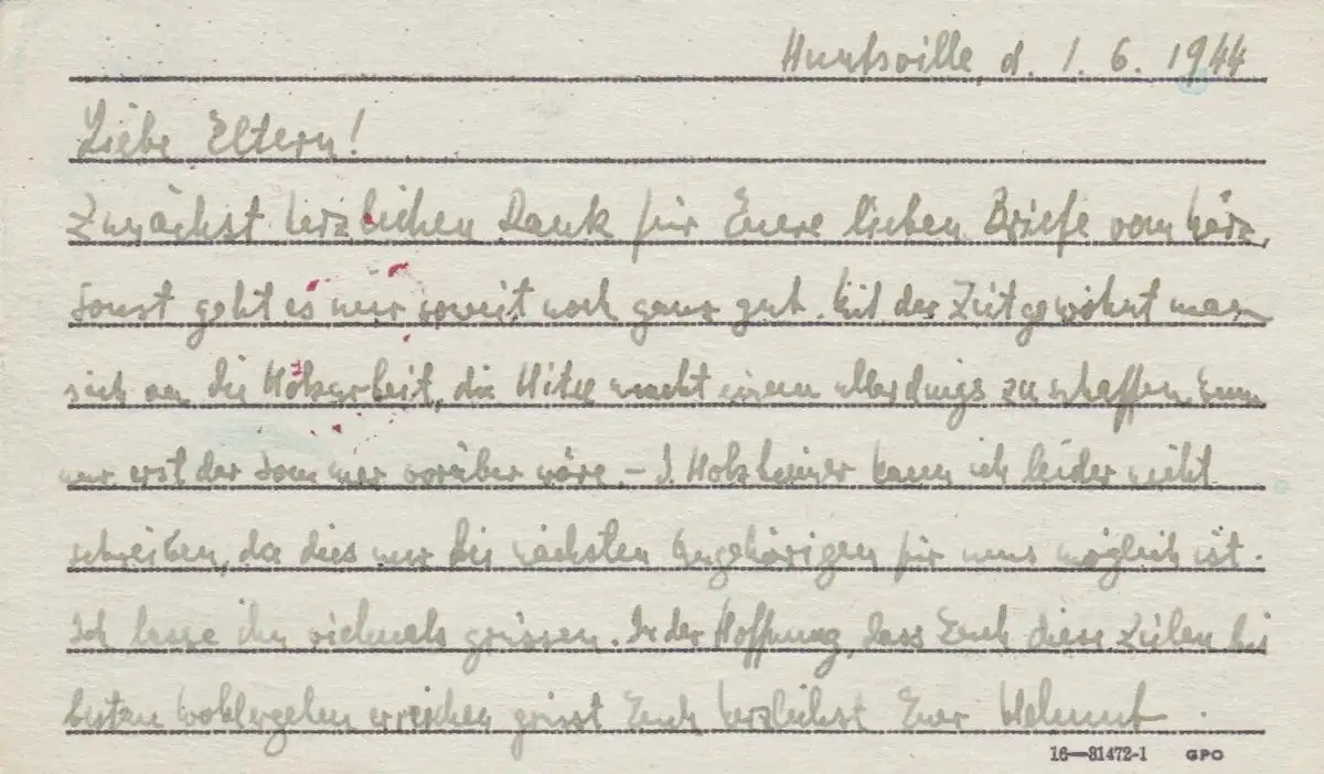 1944: PoW - Post card New York to Wilkau-Hasslau, US-censor, OKW censor