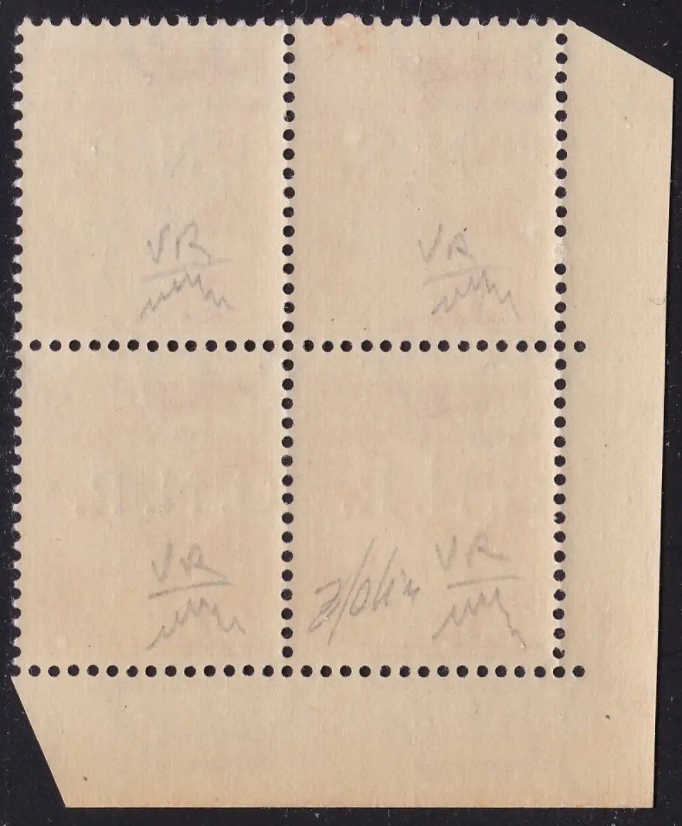 1944 RSI, PA 120 80 Cent. orange MNH/** 4ER BLOCK MIT TISCHNUMMER Signatur Olive/Schlüssel SACHSEN Katalog Euro 840 +++ Los 83 Einzelwert mit Tischnummer Euro 220 Einzelwert ohne Tischnummer Euro 70