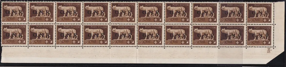 1944 RSI, Nr. 470 5 Cent. braun MNH/** 20ER BLOCK MIT TISCHNUMMER