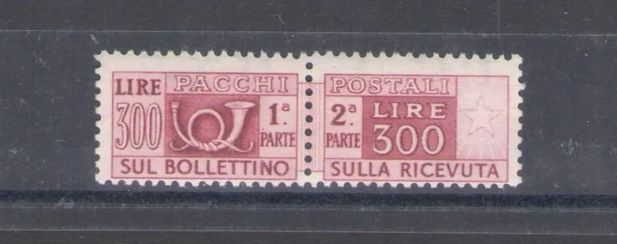 1946-51 Italien - Republik, Postpakete 300 Lire lila braun, filigranes Rad, 1 Wert, postfrisch** - Mittelmäßige Zentrierung
