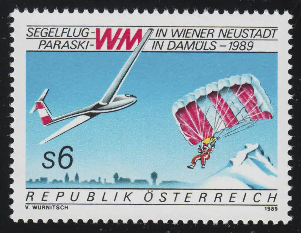 1947 Segelflug-WM Wiener Neustadt, Segelflugzeug + Fallschirmspringer 6 S, **