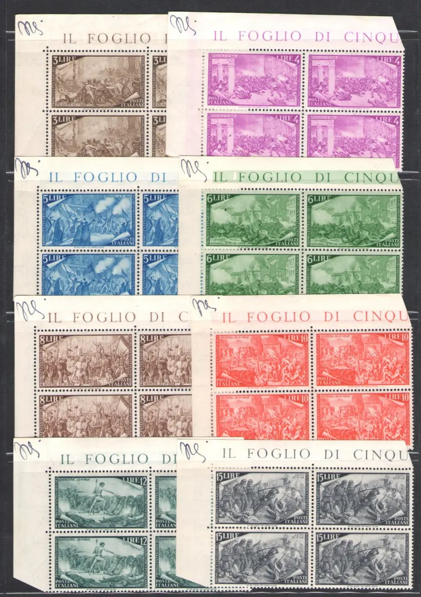 1948 REPUBLIK, Risorgimento, 13 Werte, Nr. 580/591 + E32 Gute sehr gute Zentrierung MNH ** VIERTELBLATTWINKEL, Vollgummi und Original, perfekt.