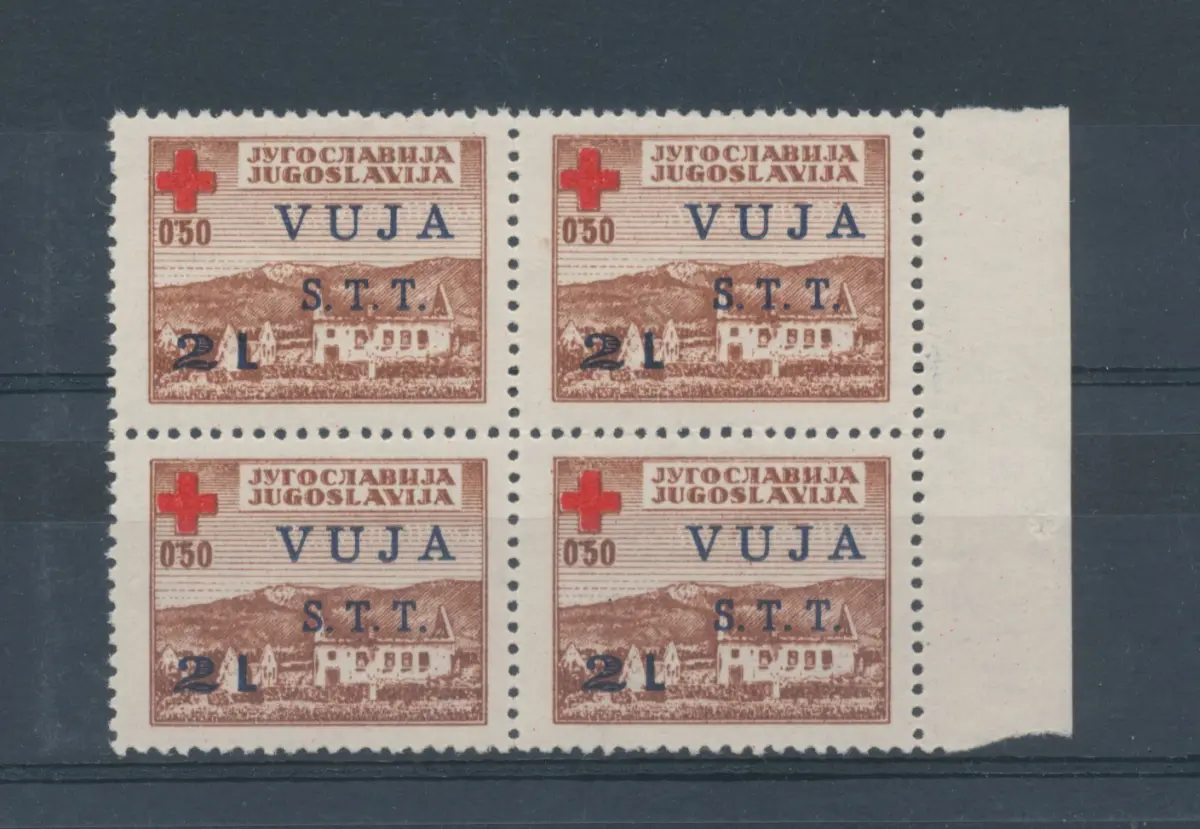 1948 TRIEST B, Nr. 4 - Pro Rotes Kreuz, 1 Wert, Quartina, postfrisch** - Neuer und perfekter Vollgummi und original Sächsischer Katalog Euro 480 Album Braun Triest B/A