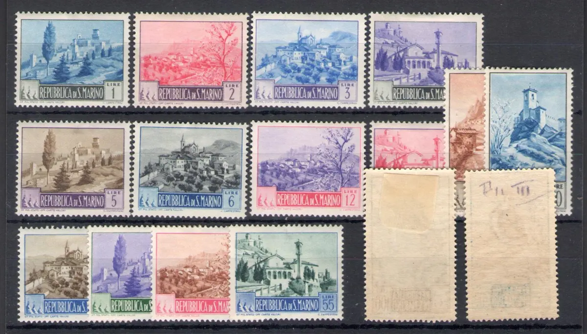 1949-50 SAN MARINO, Nr. 342-355, Komplette Serie Landschaften, 16 Werte, MH* - Komplette Serie Sächsische Linguellata Nr. 342/355 Euro 350