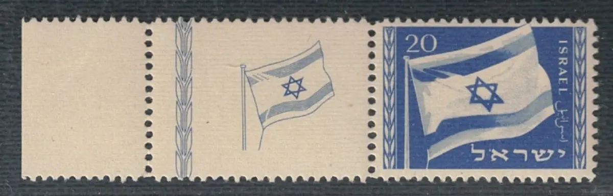 1949 ISRAEL, Nationalflagge, mit Anhang, #15, postfrisch** Blaue Box Lot DC Sammlermarken - Israelmarken - Seltene Briefmarken - Sammlermarken - Israel - Sammeln - Philatelie