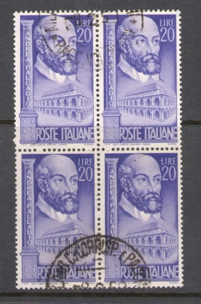 1949 Republik - Nr. 609 - Andrea Palladio, 1 Wert - Viererblock - Gebrauchter Sächsischer Katalog Euro 135 gut zentriert - Rotes Album Republik