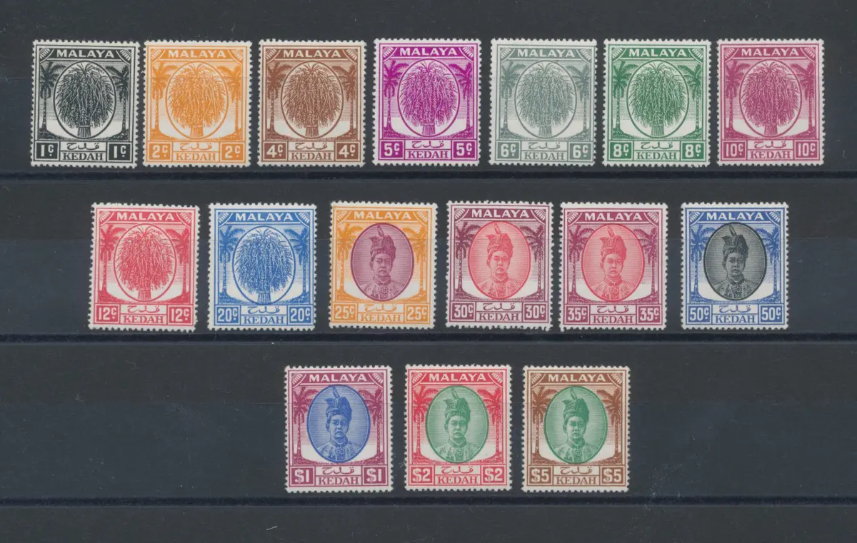1950 Malaysian States, Kedah - Sultan Badlishah - SG 76/90 set of 16 MNH** - LH* Stanley Gibbons 140 MS Album used