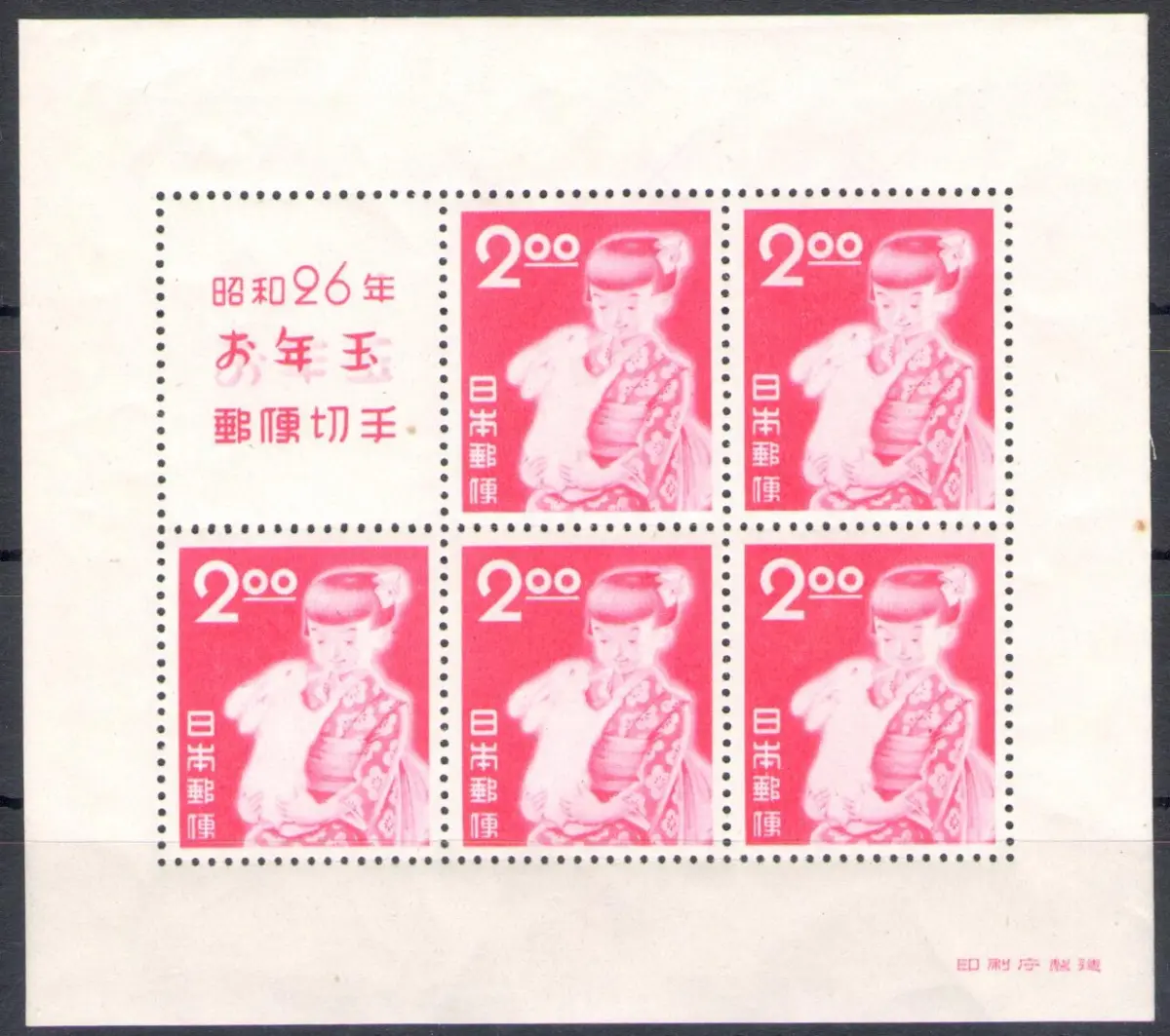 1951 JAPAN - Yvert Blatt Nr. 28A - Neujahr - MNH** - Vollgummi und Original - Sehr schöner Yvert Katalog Euro 100 A / Japan rot Zettel II