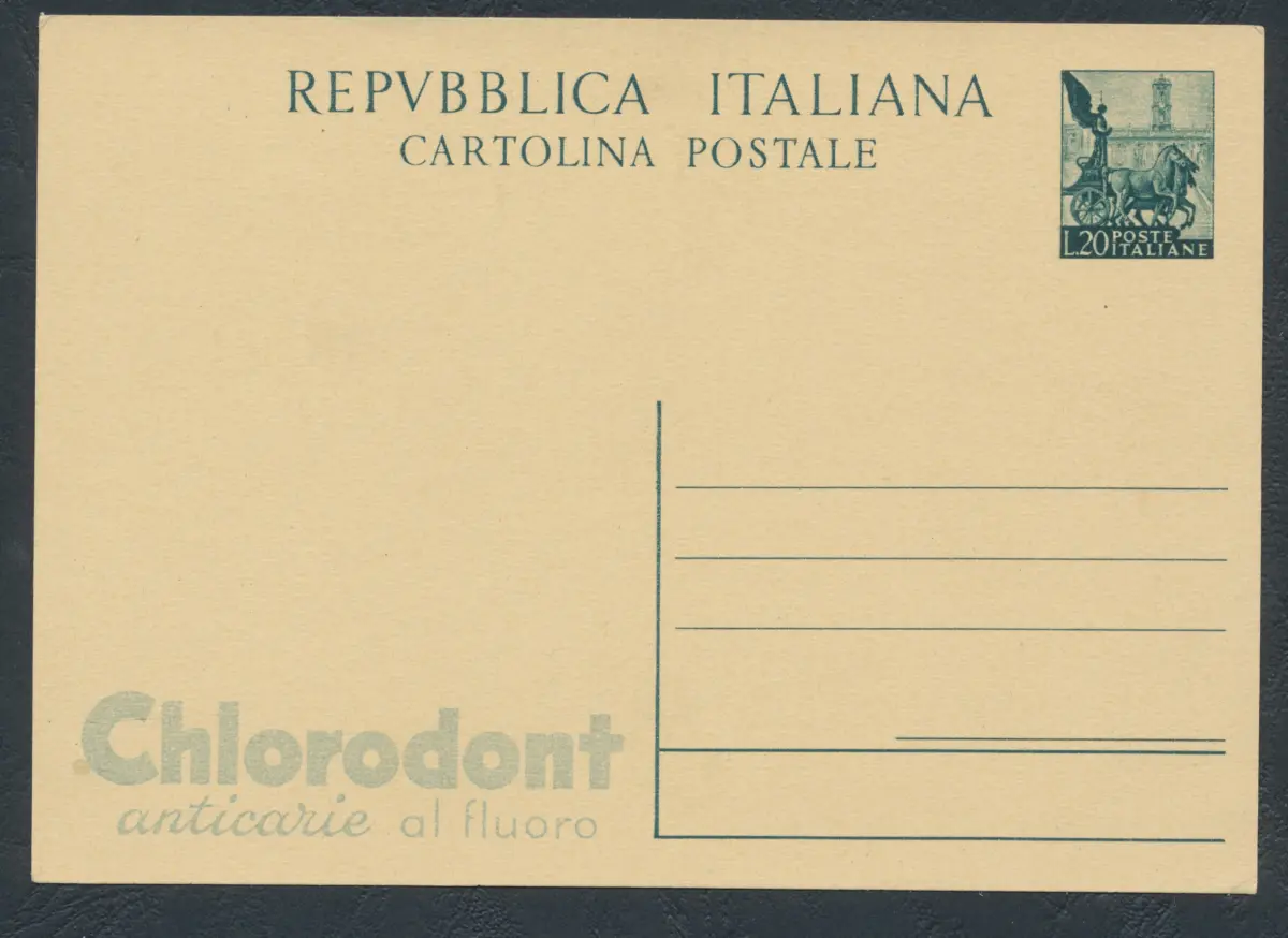 1951 Republik - C 143 - R9/2 - Quadriga, Postkarte, L 20 dunkelgrün, Chlorodont - Neu